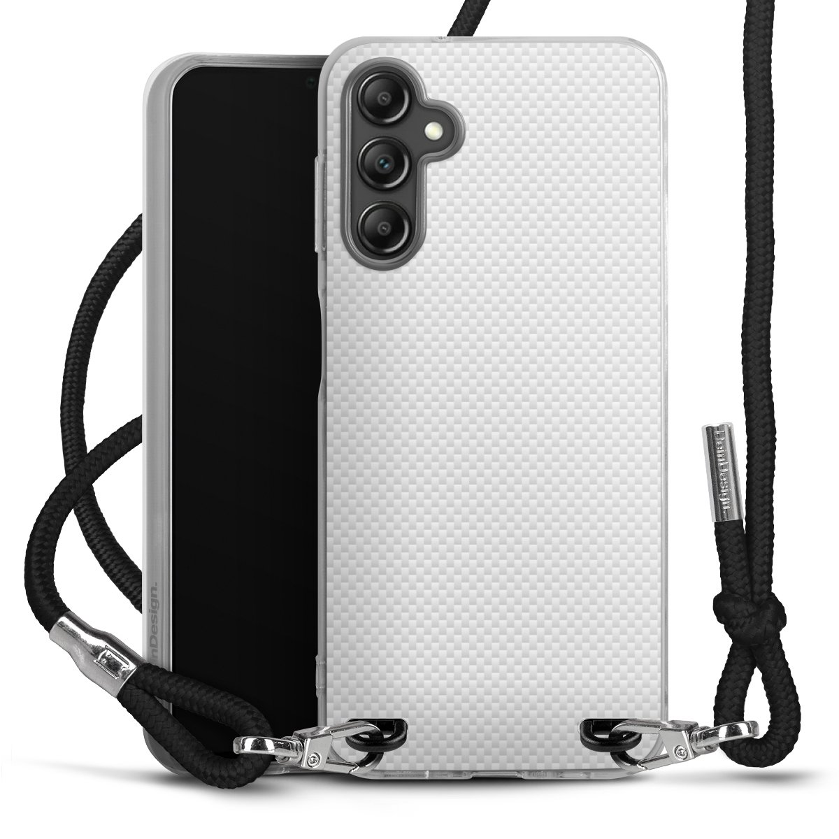 For our Carry Case we are using our advanced direct printing technology. The backside is fully printable, the frame is left unprinted. You can order the phone case without print, printed completely or also with a partial print. Choose one of our exclusive, pre-made shop designs or let your creativity shine and create your very own unique design with your pictures, overlays and text.