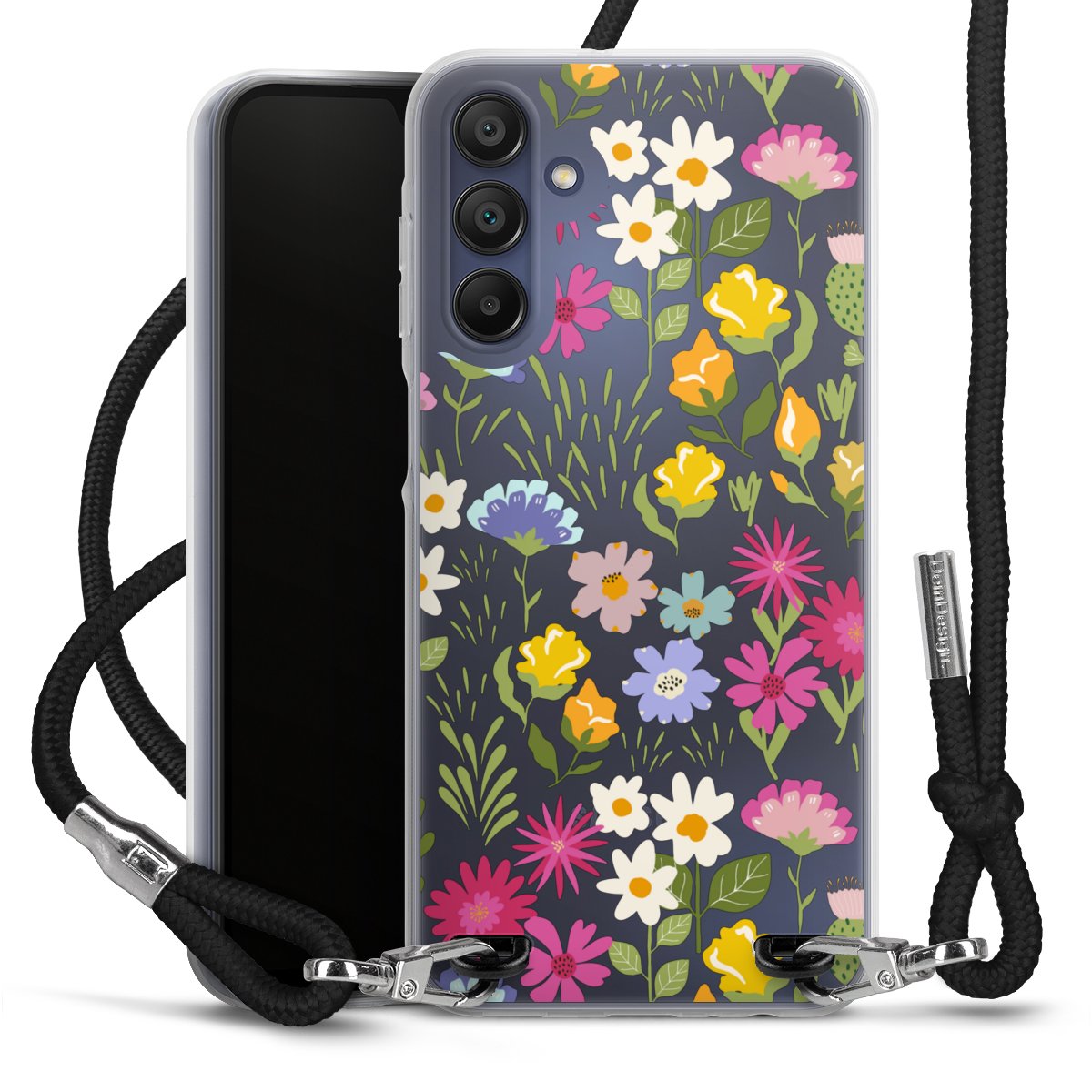 Keep your phone handy at all times, thanks to the flexible silicone case with a textile strap.