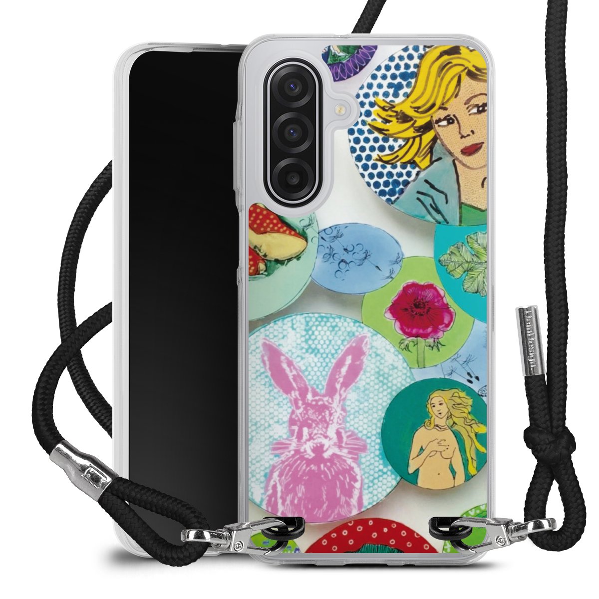 Keep your phone handy at all times, thanks to the flexible silicone case with a textile strap.