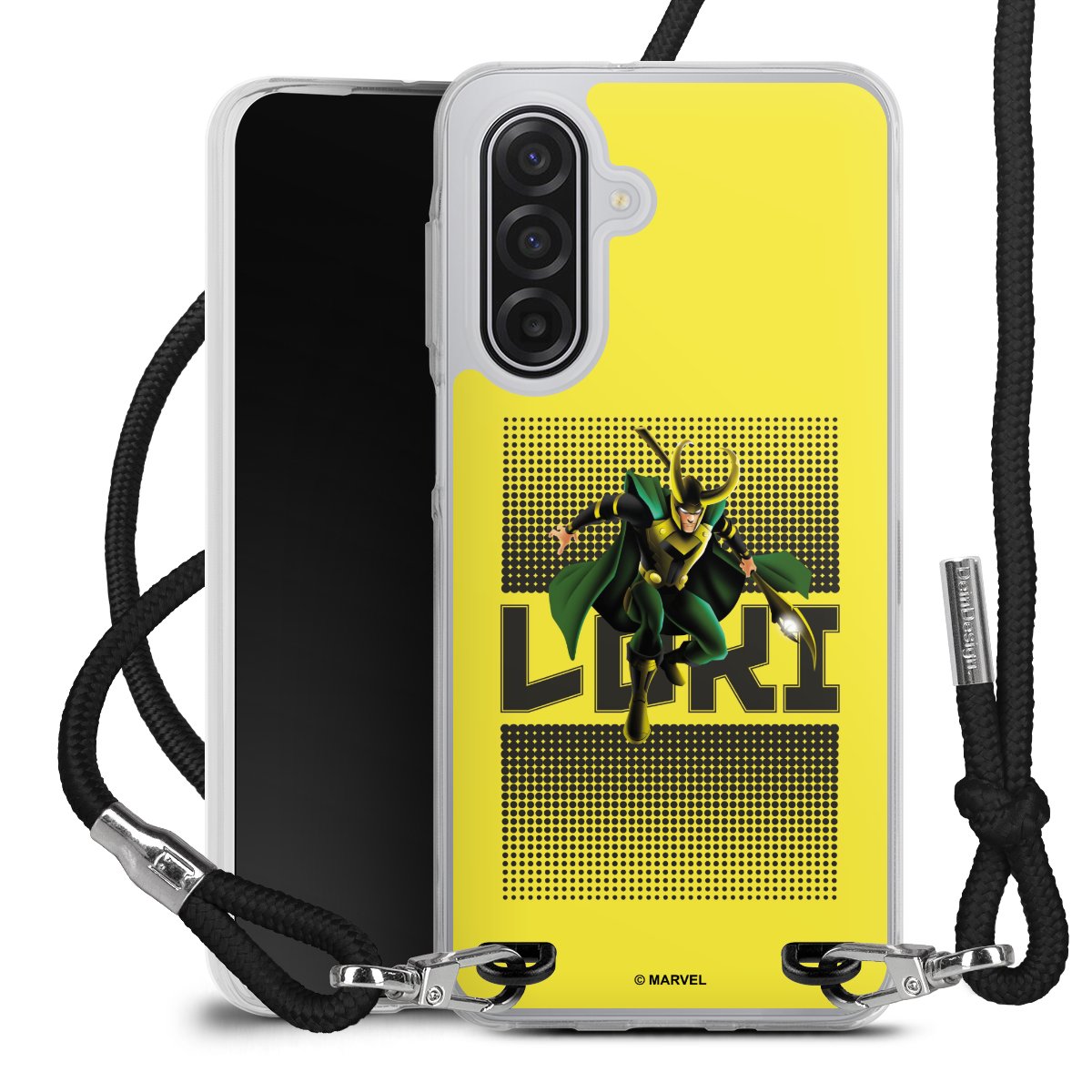 Keep your phone handy at all times, thanks to the flexible silicone case with a textile strap.
