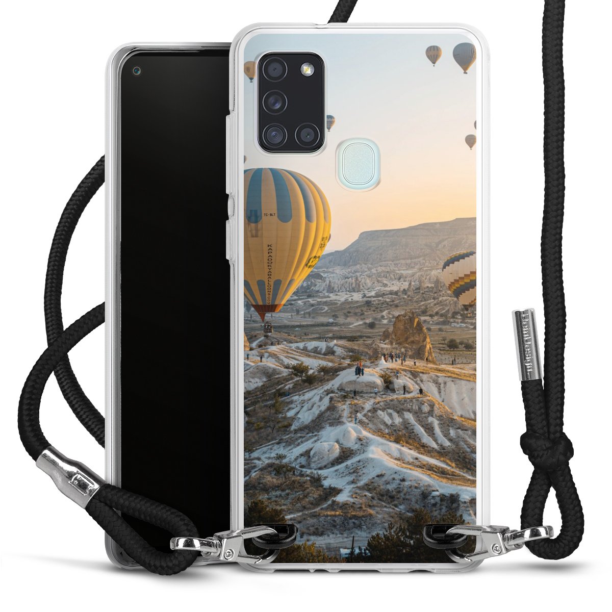 The flexible case is made from a high quality TPU material (thermoplastic Polyurethan). Thanks to its long-lasting and break resistant characteristics, the case is flexible yet consistent in form and has a great grip and feel. The textile strap made from Polyester gives a chic yet casual accent allowing you to carry your phone like a bag or necklace - a practical gadget perfect for your next adventure. The textile strap is about 1.70 meters long and the length can easily be adjusted through the knots. Our Carry Case is available in black, red, pink, grey, mustard, dark green and royal blue. We added a metal fastening to give the product an elegant touch. The ends of the textile strap are covered with metallic end caps to protect them against fraying.