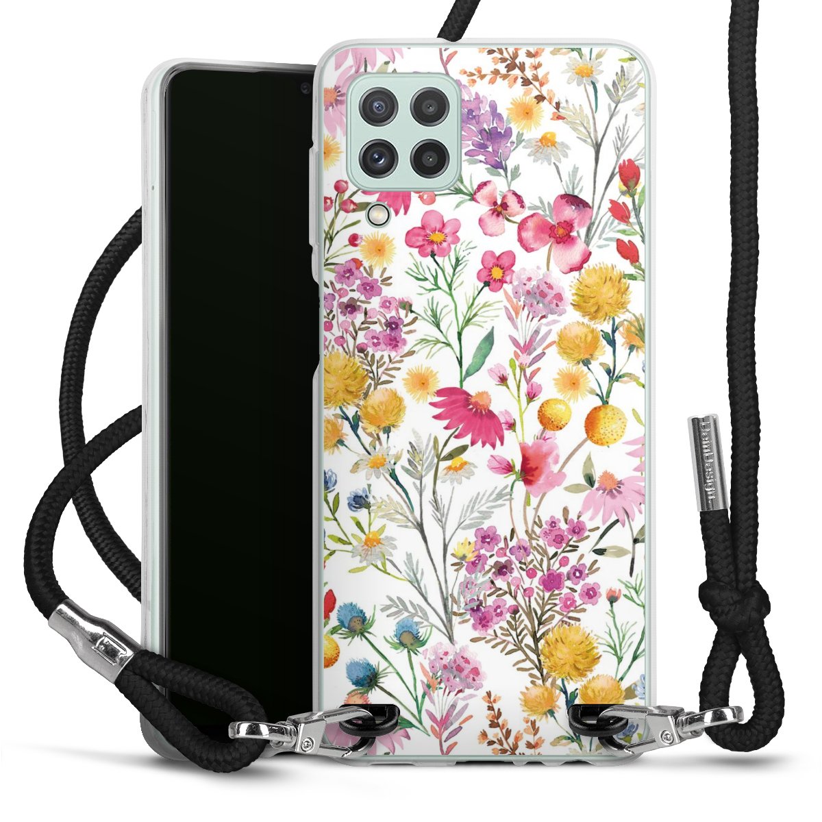 Keep your phone handy at all times, thanks to the flexible silicone case with a textile strap.