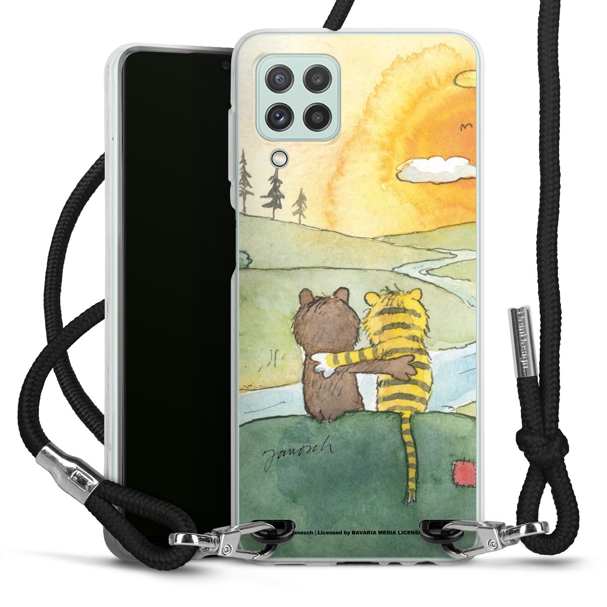 Keep your phone handy at all times, thanks to the flexible silicone case with a textile strap.