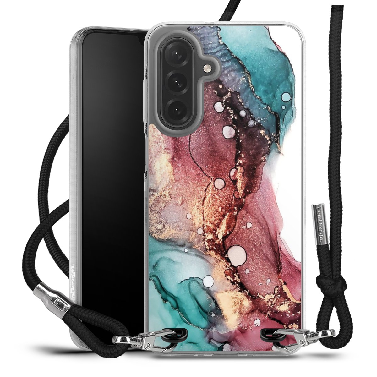 The flexible case is made from a high quality TPU material (thermoplastic Polyurethan). Thanks to its long-lasting and break resistant characteristics, the case is flexible yet consistent in form and has a great grip and feel. The textile strap made from Polyester gives a chic yet casual accent allowing you to carry your phone like a bag or necklace - a practical gadget perfect for your next adventure. The textile strap is about 1.70 meters long and the length can easily be adjusted through the knots. Our Carry Case is available in black, red, pink, grey, mustard, dark green and royal blue. We added a metal fastening to give the product an elegant touch. The ends of the textile strap are covered with metallic end caps to protect them against fraying.
