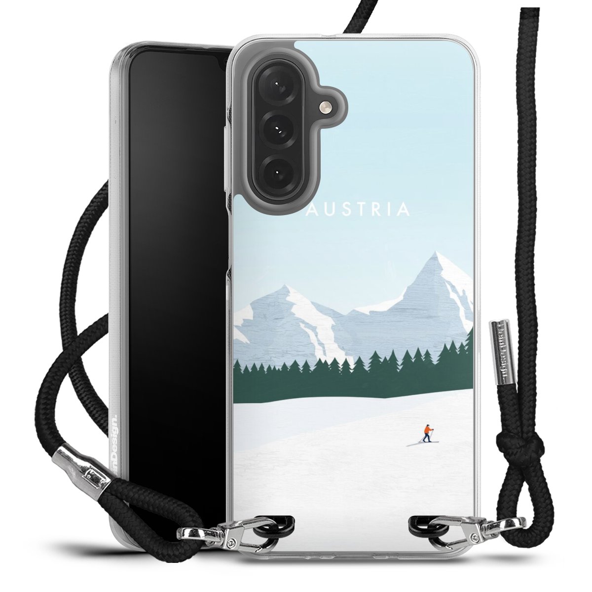 For our Carry Case we are using our advanced direct printing technology. The backside is fully printable, the frame is left unprinted. You can order the phone case without print, printed completely or also with a partial print. Choose one of our exclusive, pre-made shop designs or let your creativity shine and create your very own unique design with your pictures, overlays and text.