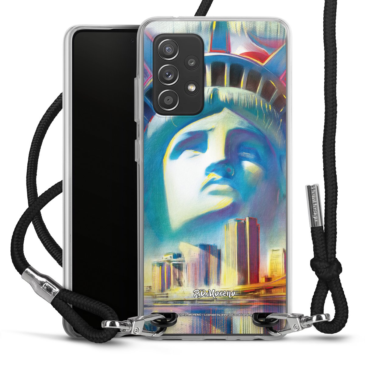 Keep your phone handy at all times, thanks to the flexible silicone case with a textile strap.