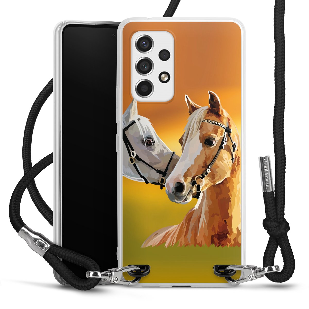 The flexible case is made from a high quality TPU material (thermoplastic Polyurethan). Thanks to its long-lasting and break resistant characteristics, the case is flexible yet consistent in form and has a great grip and feel. The textile strap made from Polyester gives a chic yet casual accent allowing you to carry your phone like a bag or necklace - a practical gadget perfect for your next adventure. The textile strap is about 1.70 meters long and the length can easily be adjusted through the knots. Our Carry Case is available in black, red, pink, grey, mustard, dark green and royal blue. We added a metal fastening to give the product an elegant touch. The ends of the textile strap are covered with metallic end caps to protect them against fraying.
