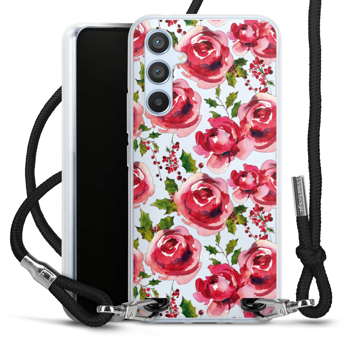 For our Carry Case we are using our advanced direct printing technology. The backside is fully printable, the frame is left unprinted. You can order the phone case without print, printed completely or also with a partial print. Choose one of our exclusive, pre-made shop designs or let your creativity shine and create your very own unique design with your pictures, overlays and text.