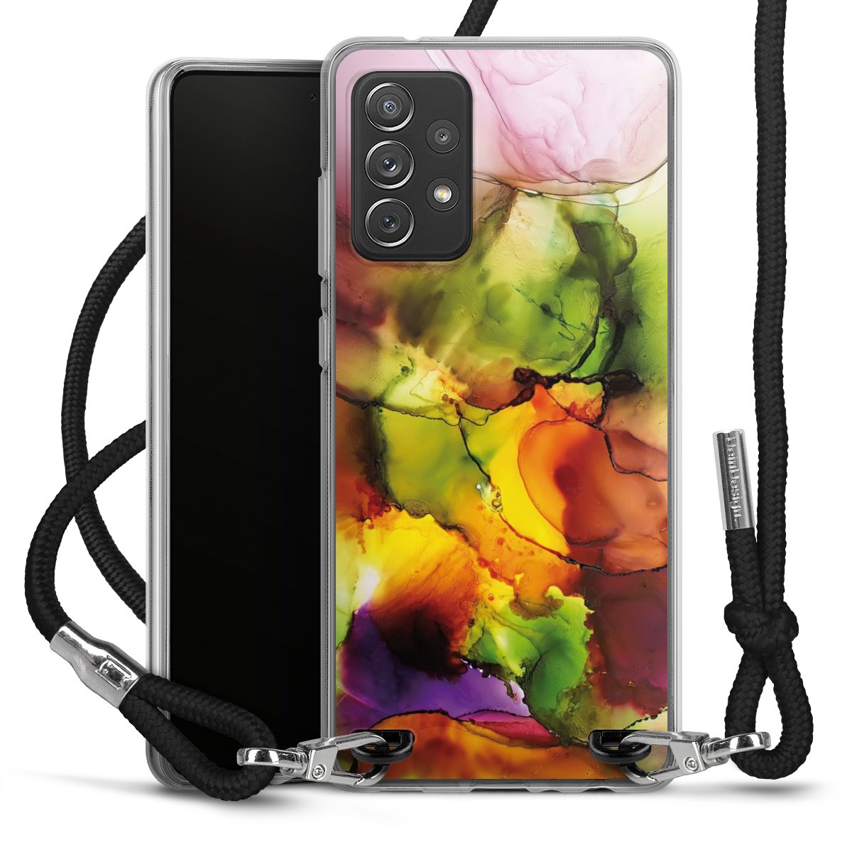 The flexible case is made from a high quality TPU material (thermoplastic Polyurethan). Thanks to its long-lasting and break resistant characteristics, the case is flexible yet consistent in form and has a great grip and feel. The textile strap made from Polyester gives a chic yet casual accent allowing you to carry your phone like a bag or necklace - a practical gadget perfect for your next adventure. The textile strap is about 1.70 meters long and the length can easily be adjusted through the knots. Our Carry Case is available in black, red, pink, grey, mustard, dark green and royal blue. We added a metal fastening to give the product an elegant touch. The ends of the textile strap are covered with metallic end caps to protect them against fraying.