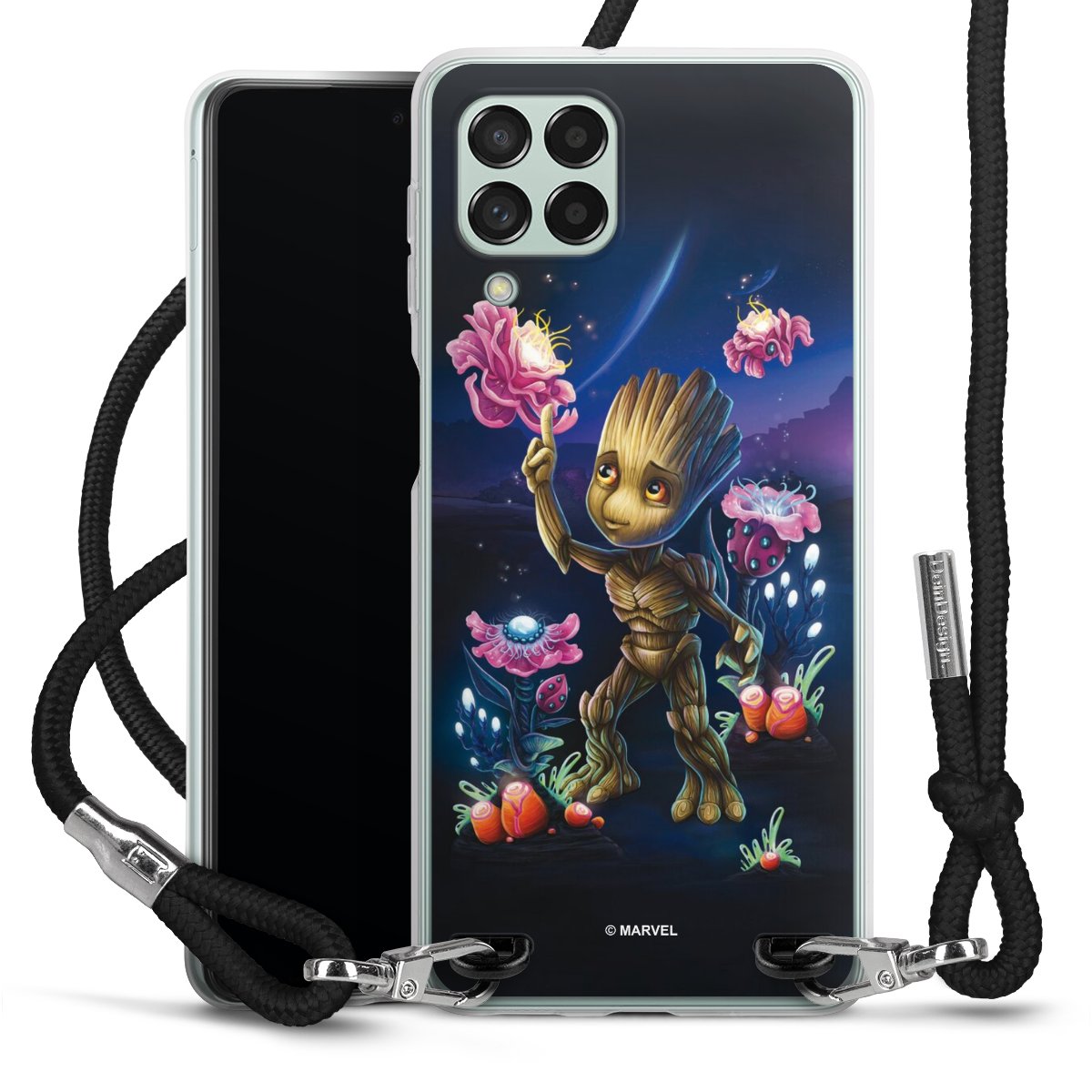 Keep your phone handy at all times, thanks to the flexible silicone case with a textile strap.