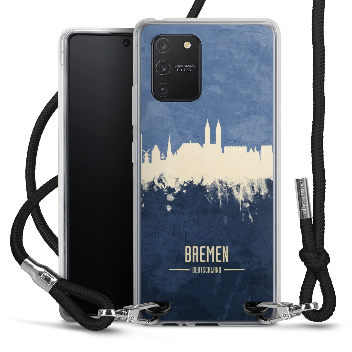 Keep your phone handy at all times, thanks to the flexible silicone case with a textile strap.