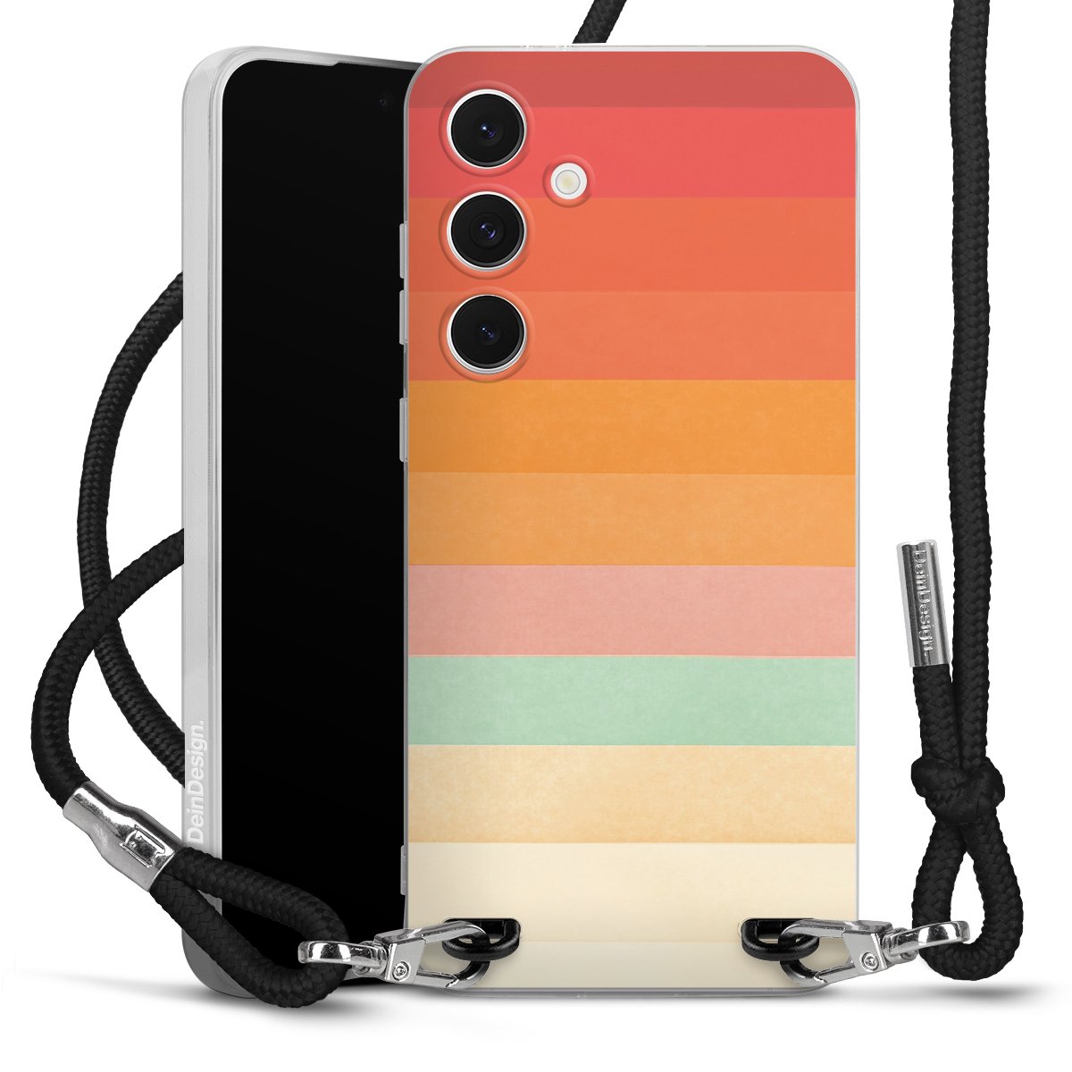The flexible case is made from a high quality TPU material (thermoplastic Polyurethan). Thanks to its long-lasting and break resistant characteristics, the case is flexible yet consistent in form and has a great grip and feel. The textile strap made from Polyester gives a chic yet casual accent allowing you to carry your phone like a bag or necklace - a practical gadget perfect for your next adventure. The textile strap is about 1.70 meters long and the length can easily be adjusted through the knots. Our Carry Case is available in black, red, pink, grey, mustard, dark green and royal blue. We added a metal fastening to give the product an elegant touch. The ends of the textile strap are covered with metallic end caps to protect them against fraying.