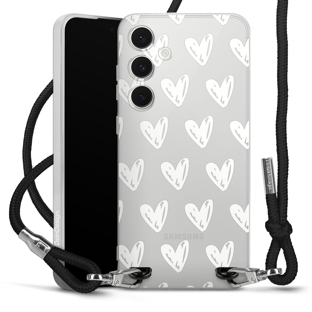For our Carry Case we are using our advanced direct printing technology. The backside is fully printable, the frame is left unprinted. You can order the phone case without print, printed completely or also with a partial print. Choose one of our exclusive, pre-made shop designs or let your creativity shine and create your very own unique design with your pictures, overlays and text.