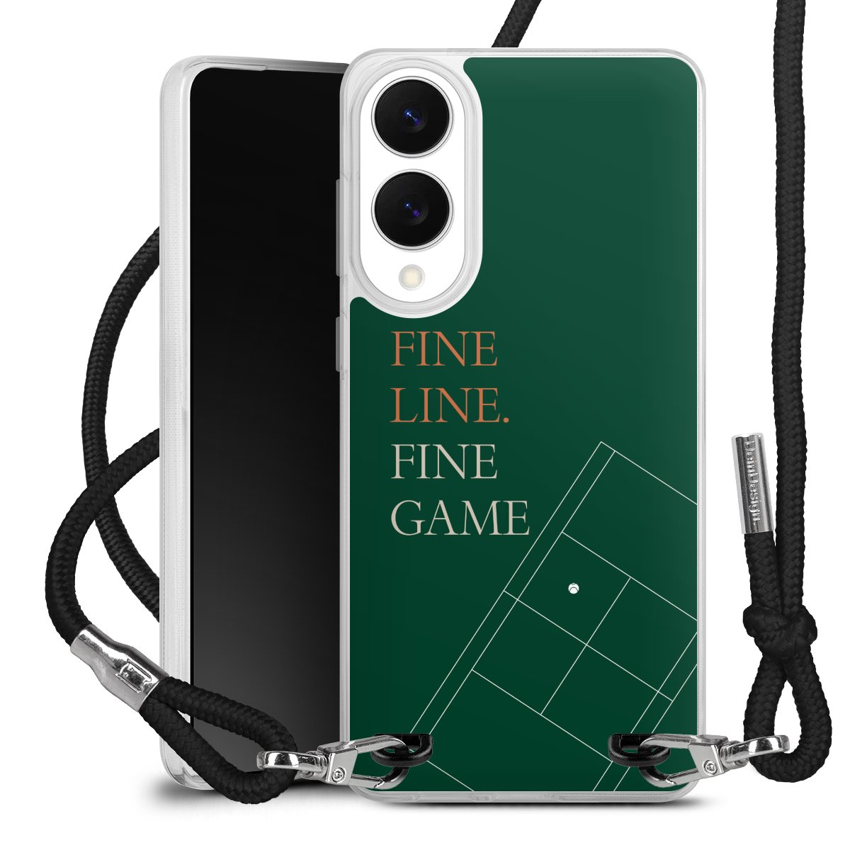 The flexible case is made from a high quality TPU material (thermoplastic Polyurethan). Thanks to its long-lasting and break resistant characteristics, the case is flexible yet consistent in form and has a great grip and feel. The textile strap made from Polyester gives a chic yet casual accent allowing you to carry your phone like a bag or necklace - a practical gadget perfect for your next adventure. The textile strap is about 1.70 meters long and the length can easily be adjusted through the knots. Our Carry Case is available in black, red, pink, grey, mustard, dark green and royal blue. We added a metal fastening to give the product an elegant touch. The ends of the textile strap are covered with metallic end caps to protect them against fraying.