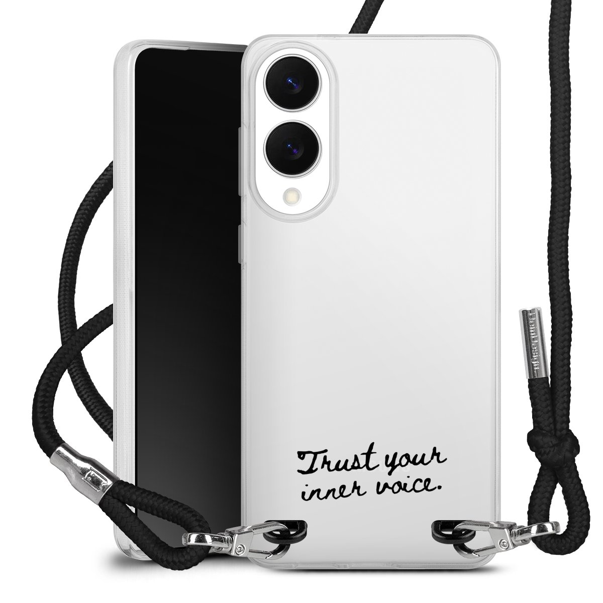 The flexible case is made from a high quality TPU material (thermoplastic Polyurethan). Thanks to its long-lasting and break resistant characteristics, the case is flexible yet consistent in form and has a great grip and feel. The textile strap made from Polyester gives a chic yet casual accent allowing you to carry your phone like a bag or necklace - a practical gadget perfect for your next adventure. The textile strap is about 1.70 meters long and the length can easily be adjusted through the knots. Our Carry Case is available in black, red, pink, grey, mustard, dark green and royal blue. We added a metal fastening to give the product an elegant touch. The ends of the textile strap are covered with metallic end caps to protect them against fraying.