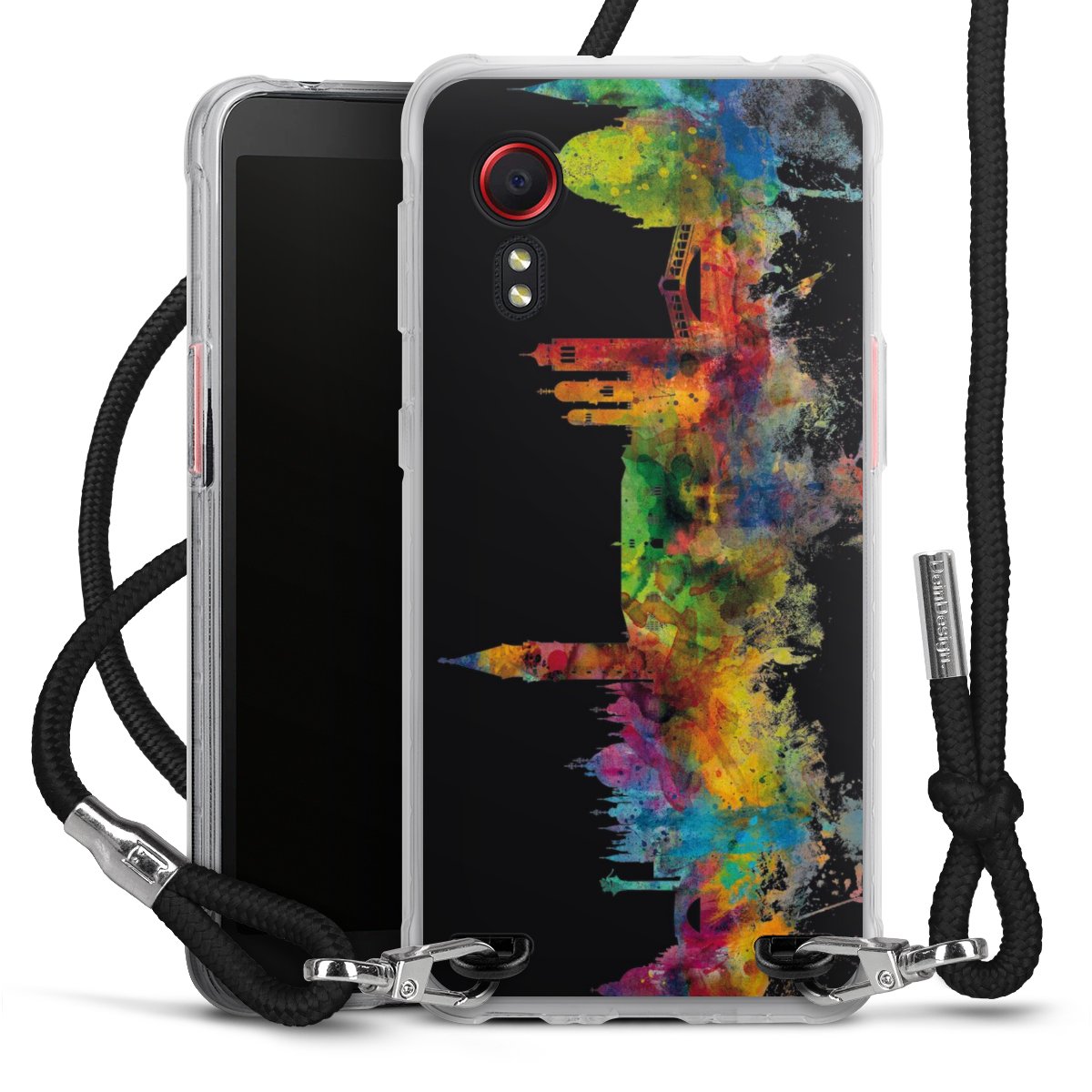 Keep your phone handy at all times, thanks to the flexible silicone case with a textile strap.