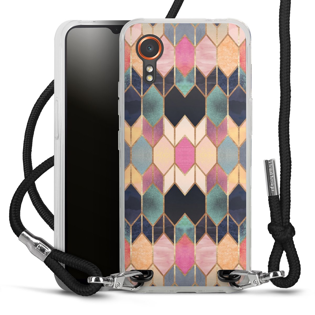 The flexible case is made from a high quality TPU material (thermoplastic Polyurethan). Thanks to its long-lasting and break resistant characteristics, the case is flexible yet consistent in form and has a great grip and feel. The textile strap made from Polyester gives a chic yet casual accent allowing you to carry your phone like a bag or necklace - a practical gadget perfect for your next adventure. The textile strap is about 1.70 meters long and the length can easily be adjusted through the knots. Our Carry Case is available in black, red, pink, grey, mustard, dark green and royal blue. We added a metal fastening to give the product an elegant touch. The ends of the textile strap are covered with metallic end caps to protect them against fraying.