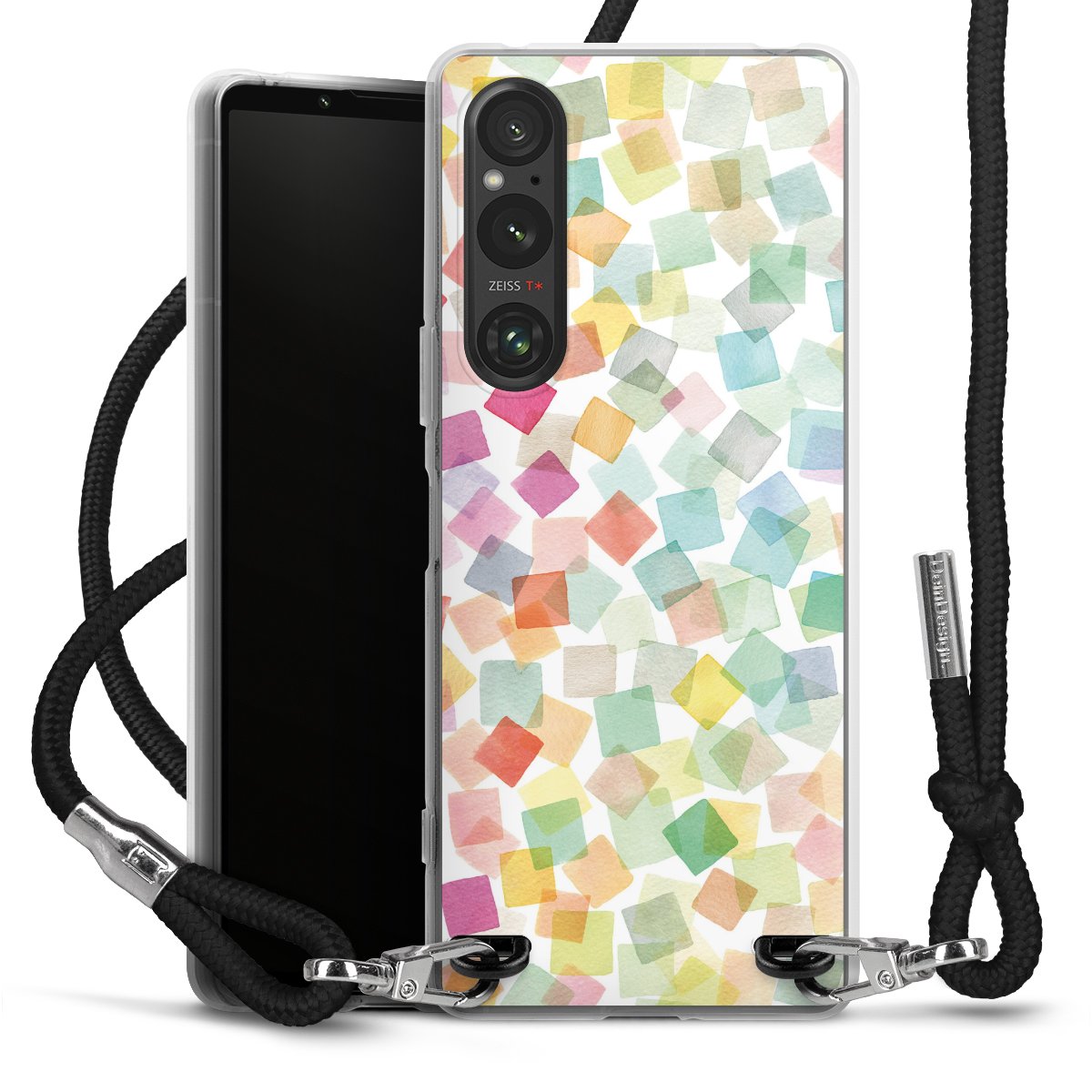 For our Carry Case we are using our advanced direct printing technology. The backside is fully printable, the frame is left unprinted. You can order the phone case without print, printed completely or also with a partial print. Choose one of our exclusive, pre-made shop designs or let your creativity shine and create your very own unique design with your pictures, overlays and text.