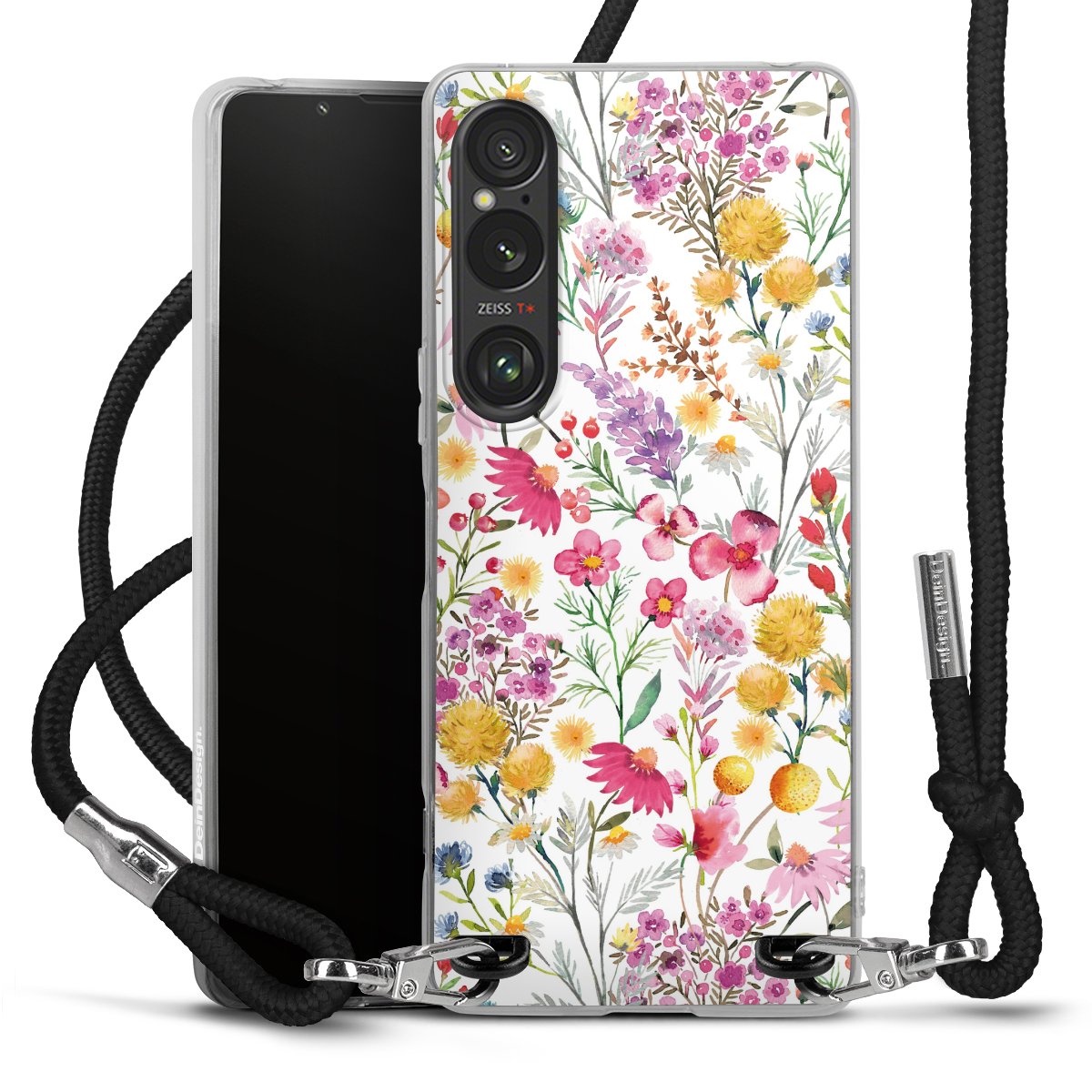 Keep your phone handy at all times, thanks to the flexible silicone case with a textile strap.