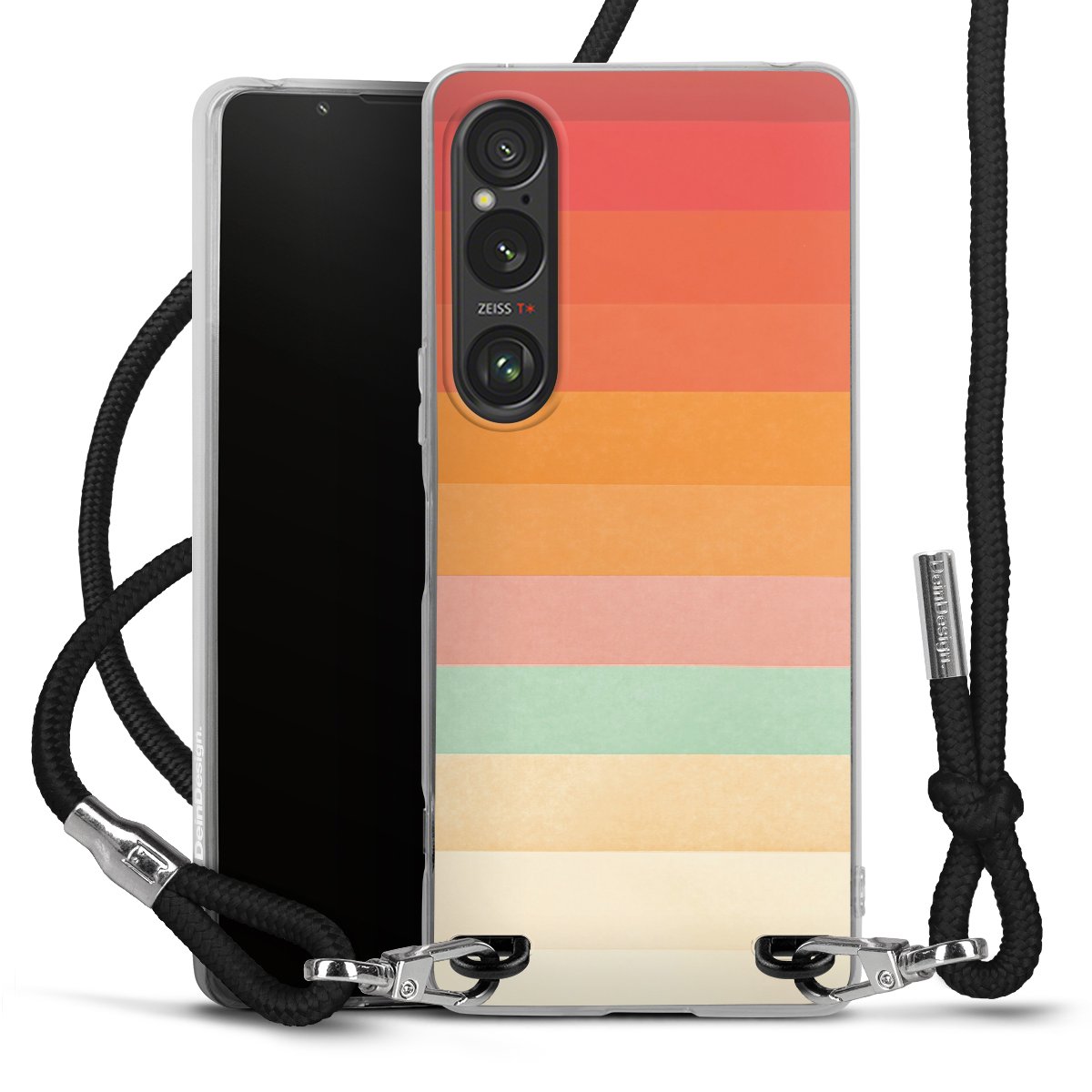 The flexible case is made from a high quality TPU material (thermoplastic Polyurethan). Thanks to its long-lasting and break resistant characteristics, the case is flexible yet consistent in form and has a great grip and feel. The textile strap made from Polyester gives a chic yet casual accent allowing you to carry your phone like a bag or necklace - a practical gadget perfect for your next adventure. The textile strap is about 1.70 meters long and the length can easily be adjusted through the knots. Our Carry Case is available in black, red, pink, grey, mustard, dark green and royal blue. We added a metal fastening to give the product an elegant touch. The ends of the textile strap are covered with metallic end caps to protect them against fraying.