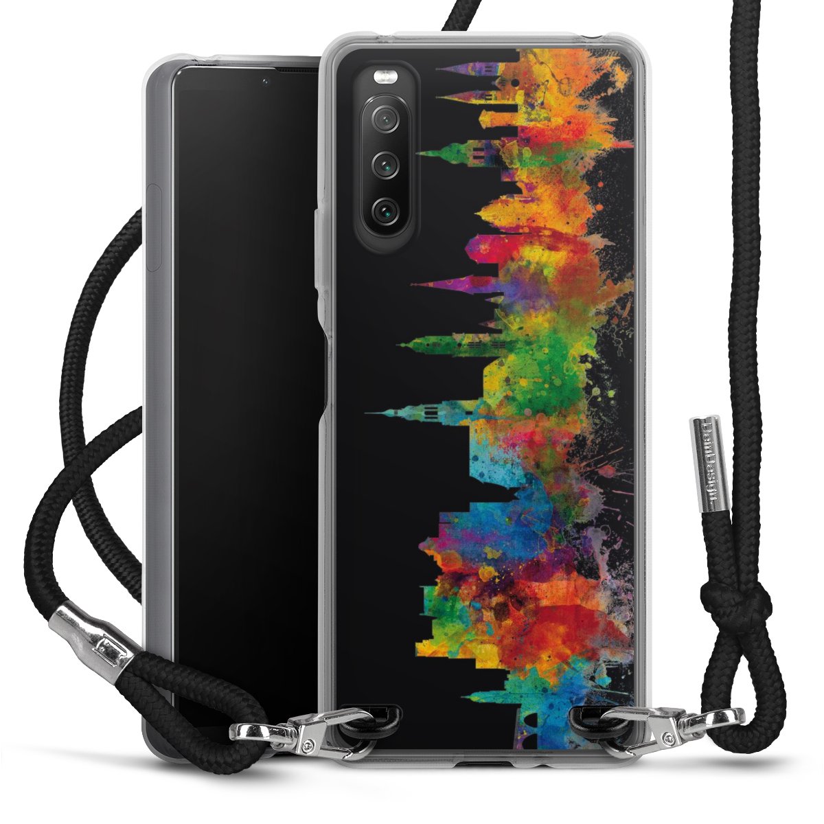 Keep your phone handy at all times, thanks to the flexible silicone case with a textile strap.