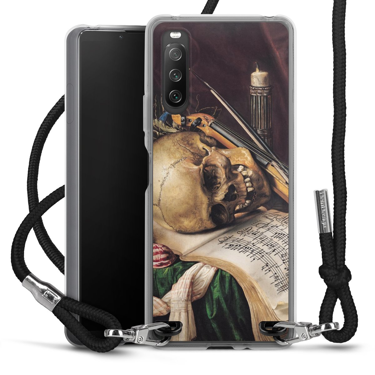 Keep your phone handy at all times, thanks to the flexible silicone case with a textile strap.