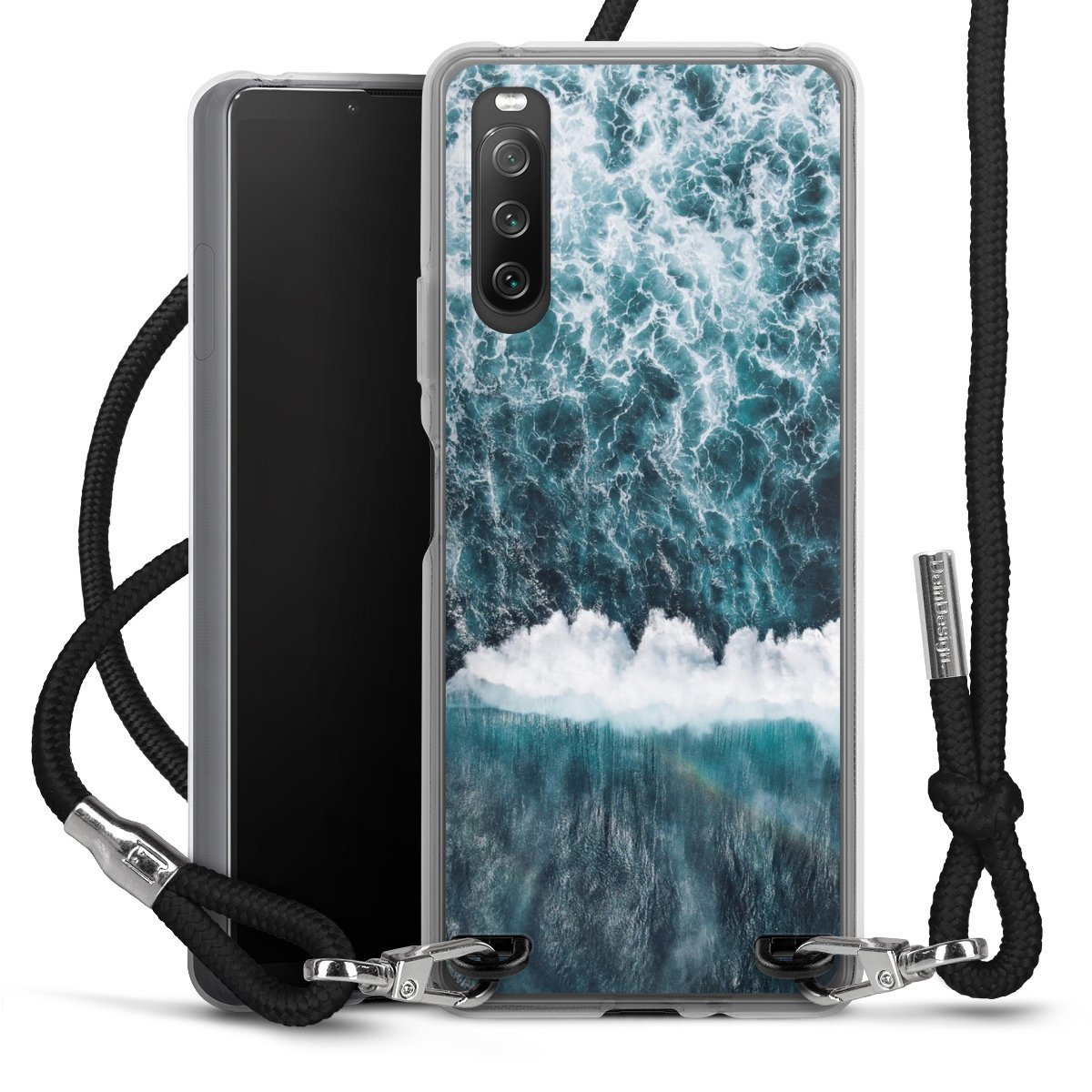 Keep your phone handy at all times, thanks to the flexible silicone case with a textile strap.