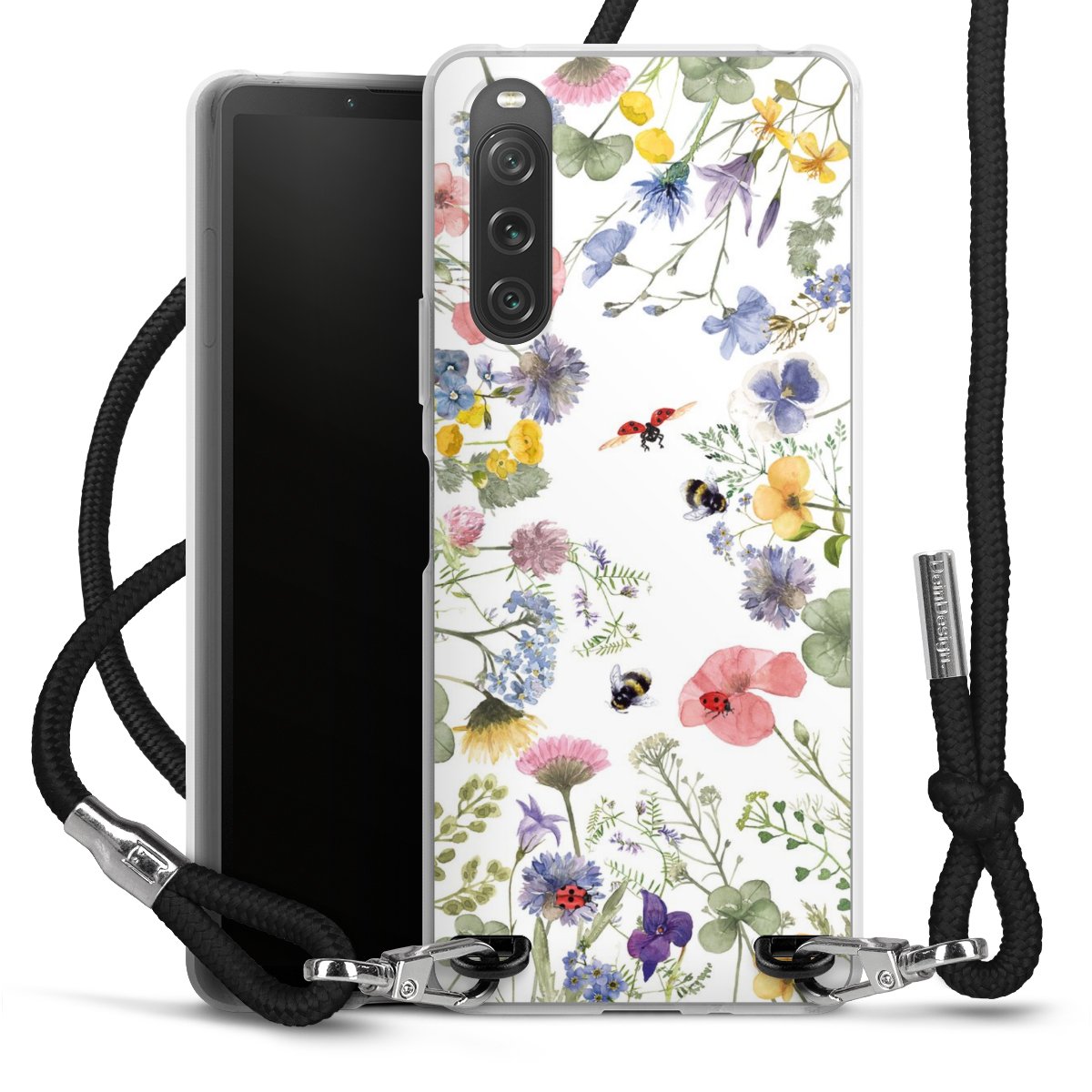 Keep your phone handy at all times, thanks to the flexible silicone case with a textile strap.