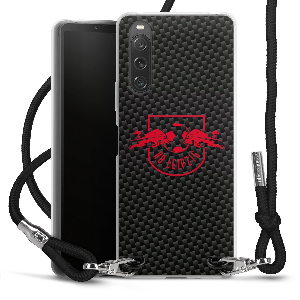 Red RB Leipzig logo on carbon look