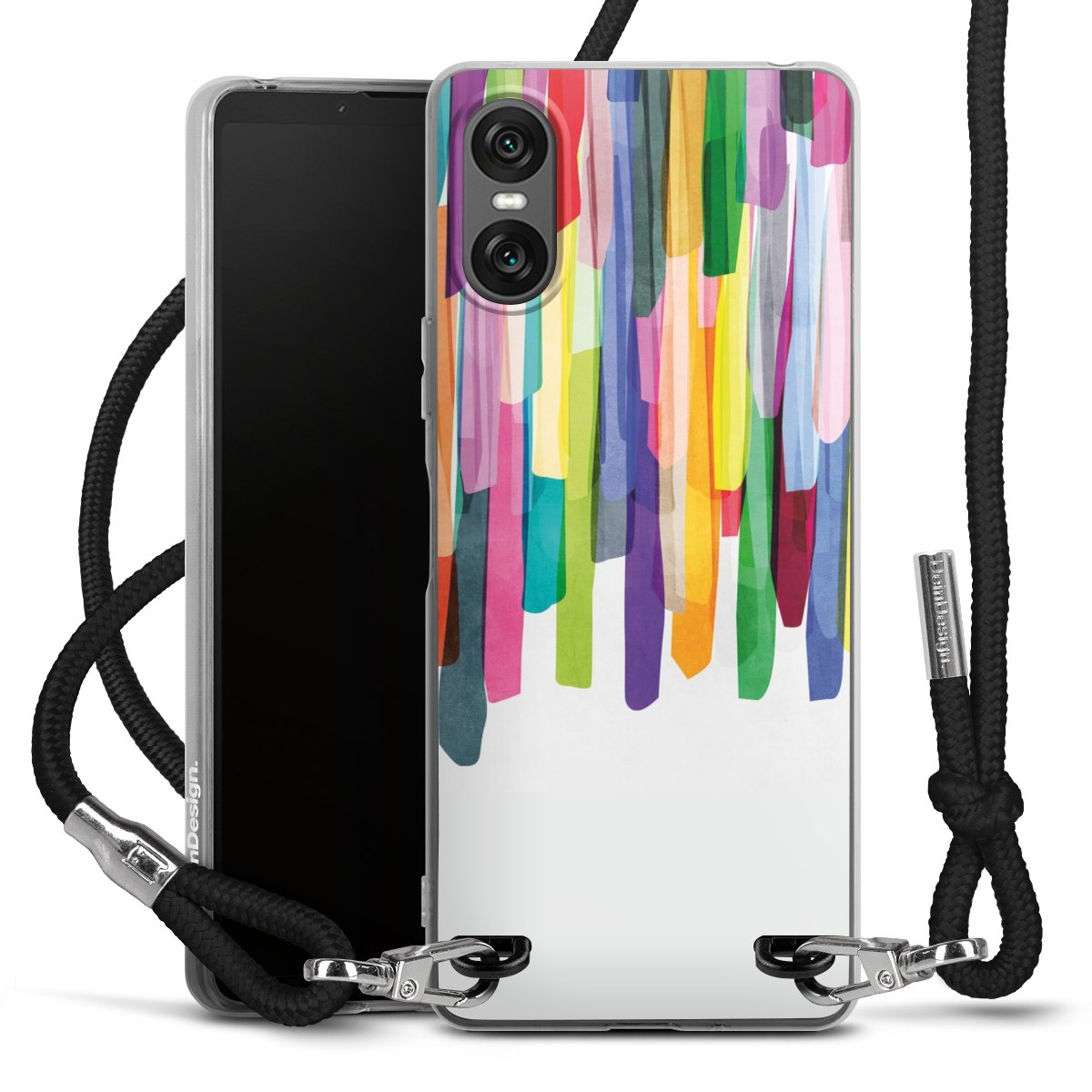 The flexible case is made from a high quality TPU material (thermoplastic Polyurethan). Thanks to its long-lasting and break resistant characteristics, the case is flexible yet consistent in form and has a great grip and feel. The textile strap made from Polyester gives a chic yet casual accent allowing you to carry your phone like a bag or necklace - a practical gadget perfect for your next adventure. The textile strap is about 1.70 meters long and the length can easily be adjusted through the knots. Our Carry Case is available in black, red, pink, grey, mustard, dark green and royal blue. We added a metal fastening to give the product an elegant touch. The ends of the textile strap are covered with metallic end caps to protect them against fraying.