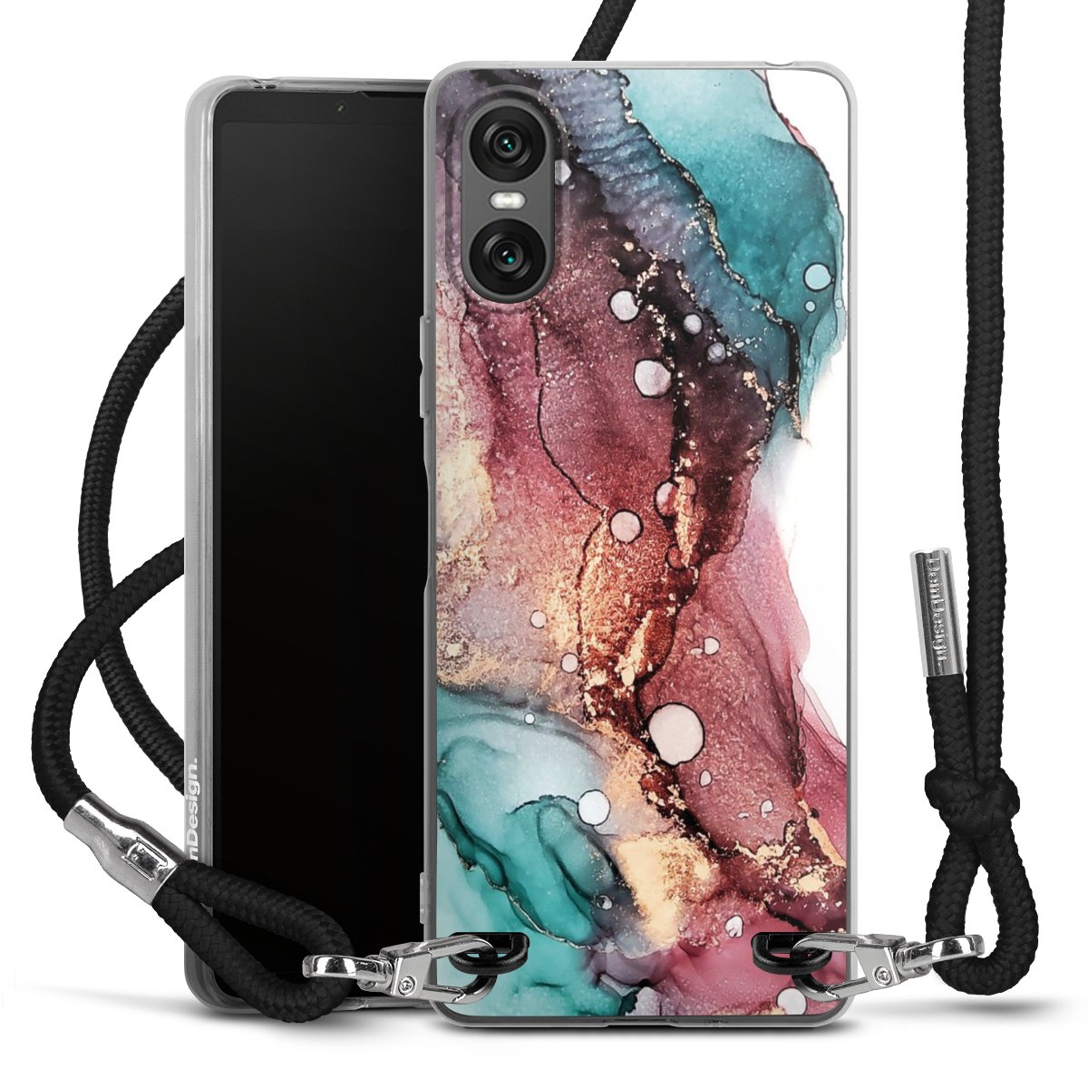 The flexible case is made from a high quality TPU material (thermoplastic Polyurethan). Thanks to its long-lasting and break resistant characteristics, the case is flexible yet consistent in form and has a great grip and feel. The textile strap made from Polyester gives a chic yet casual accent allowing you to carry your phone like a bag or necklace - a practical gadget perfect for your next adventure. The textile strap is about 1.70 meters long and the length can easily be adjusted through the knots. Our Carry Case is available in black, red, pink, grey, mustard, dark green and royal blue. We added a metal fastening to give the product an elegant touch. The ends of the textile strap are covered with metallic end caps to protect them against fraying.