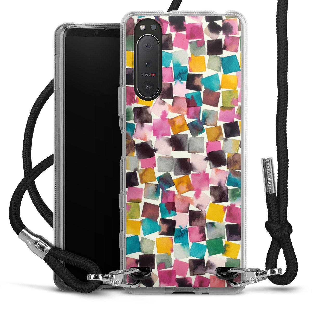 Keep your phone handy at all times, thanks to the flexible silicone case with a textile strap.