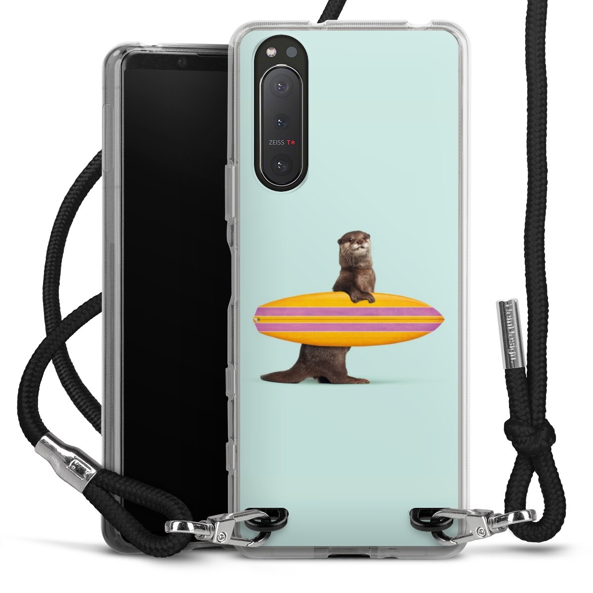 Keep your phone handy at all times, thanks to the flexible silicone case with a textile strap.