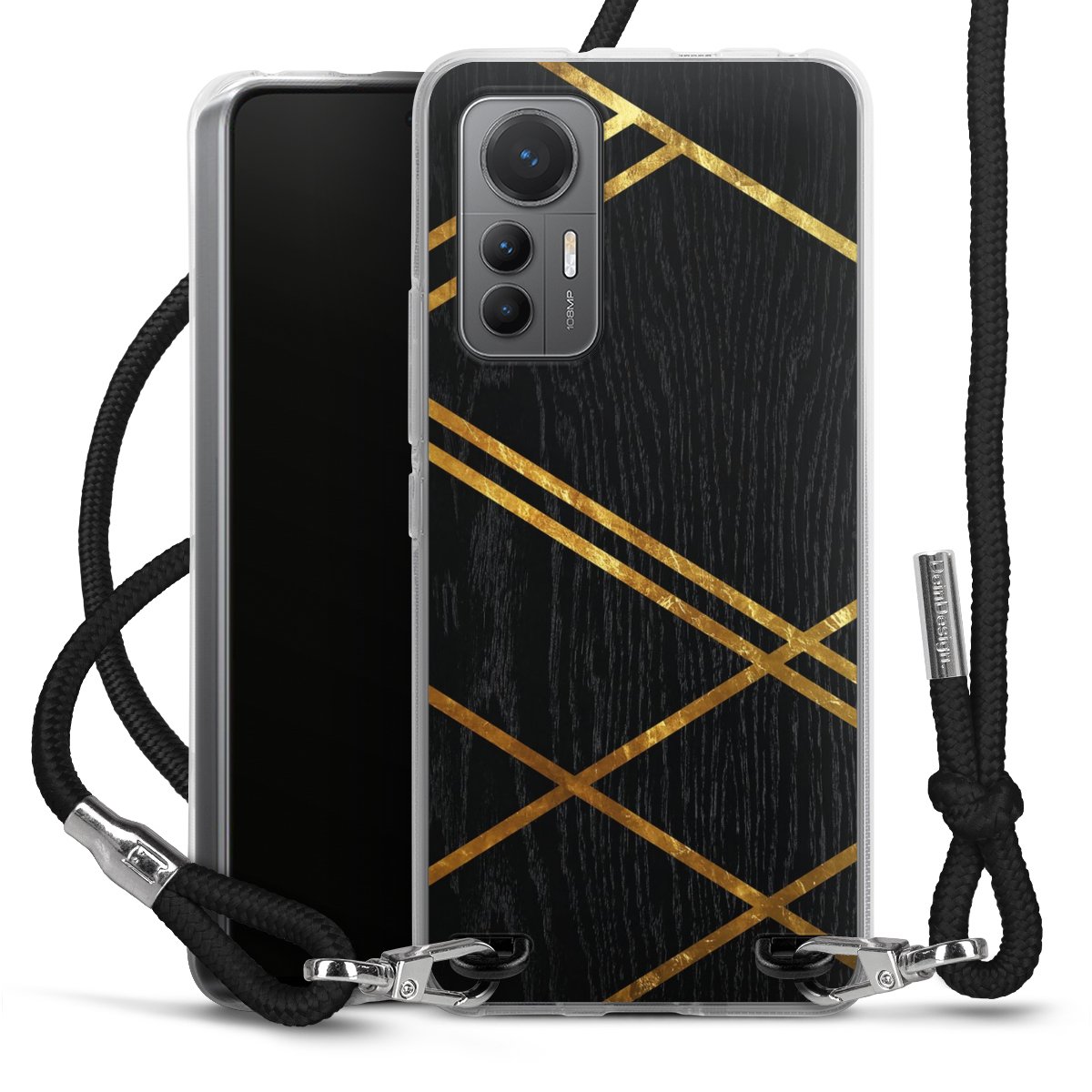 Black Geometric Pattern Golden Stripes