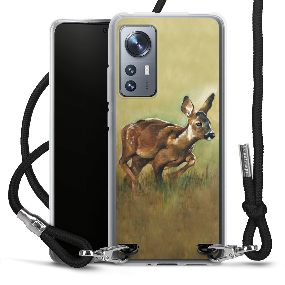 Keep your phone handy at all times, thanks to the flexible silicone case with a textile strap.