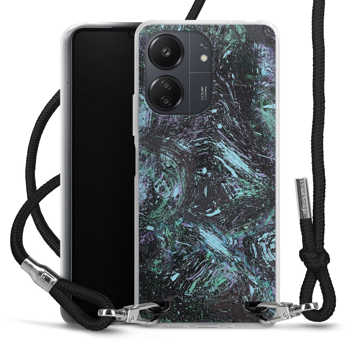 Keep your phone handy at all times, thanks to the flexible silicone case with a textile strap.