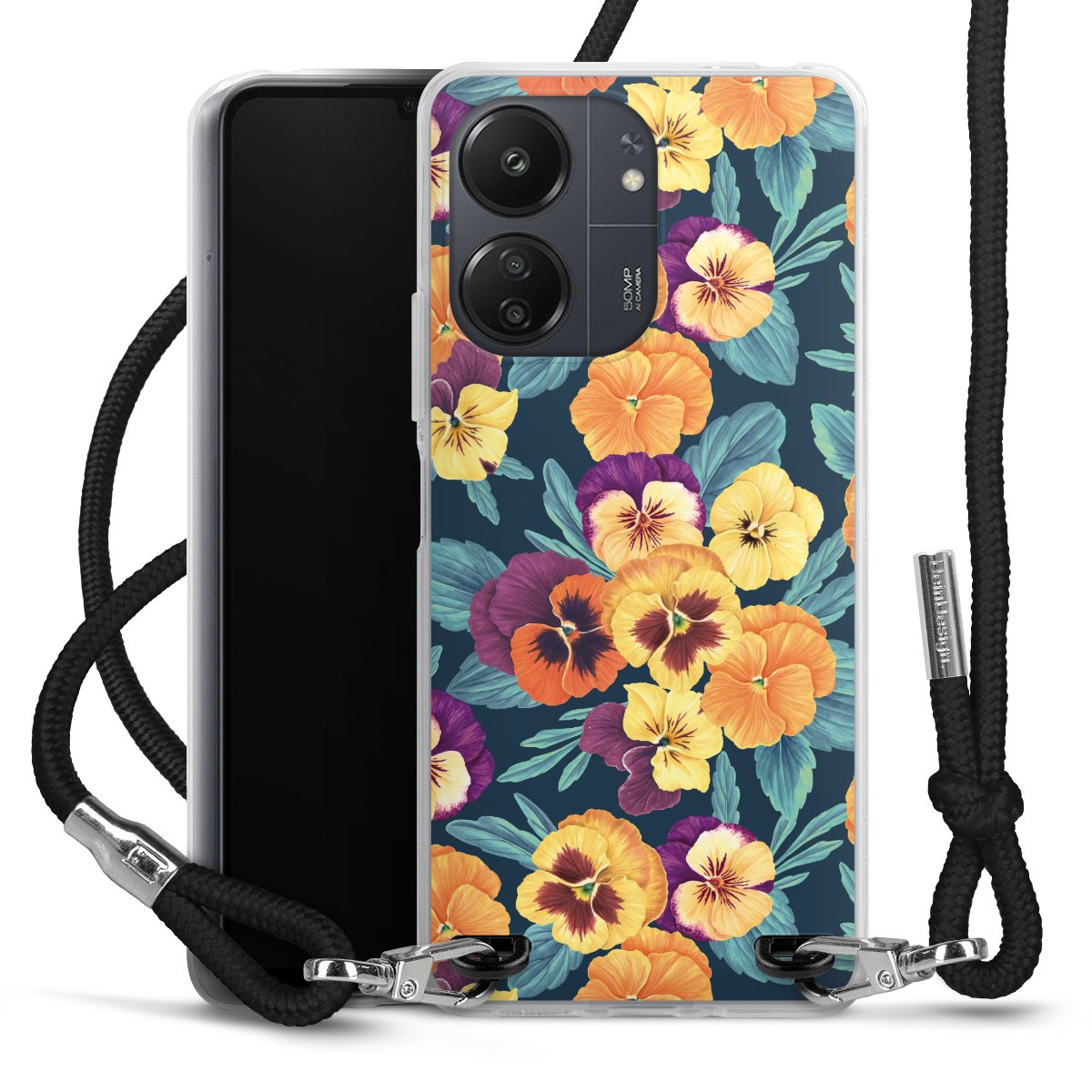 Keep your phone handy at all times, thanks to the flexible silicone case with a textile strap.