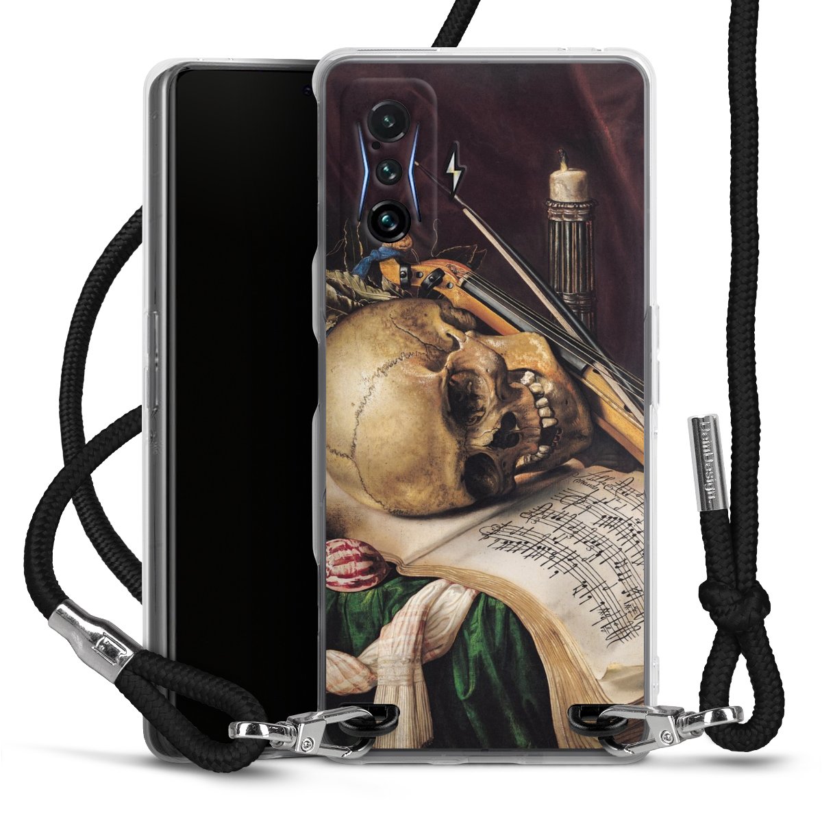 Keep your phone handy at all times, thanks to the flexible silicone case with a textile strap.