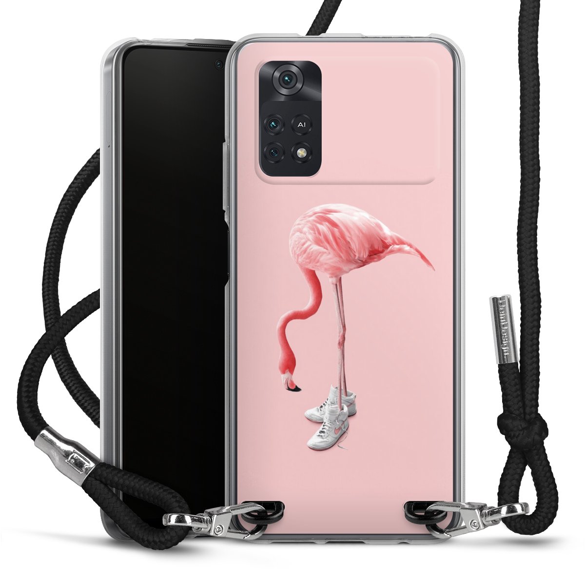 Keep your phone handy at all times, thanks to the flexible silicone case with a textile strap.