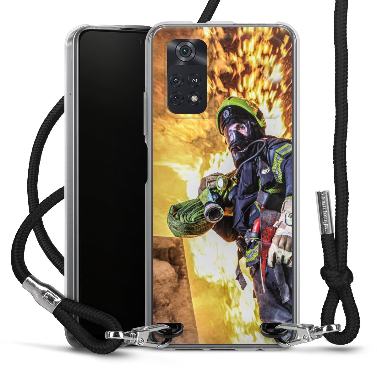 Keep your phone handy at all times, thanks to the flexible silicone case with a textile strap.