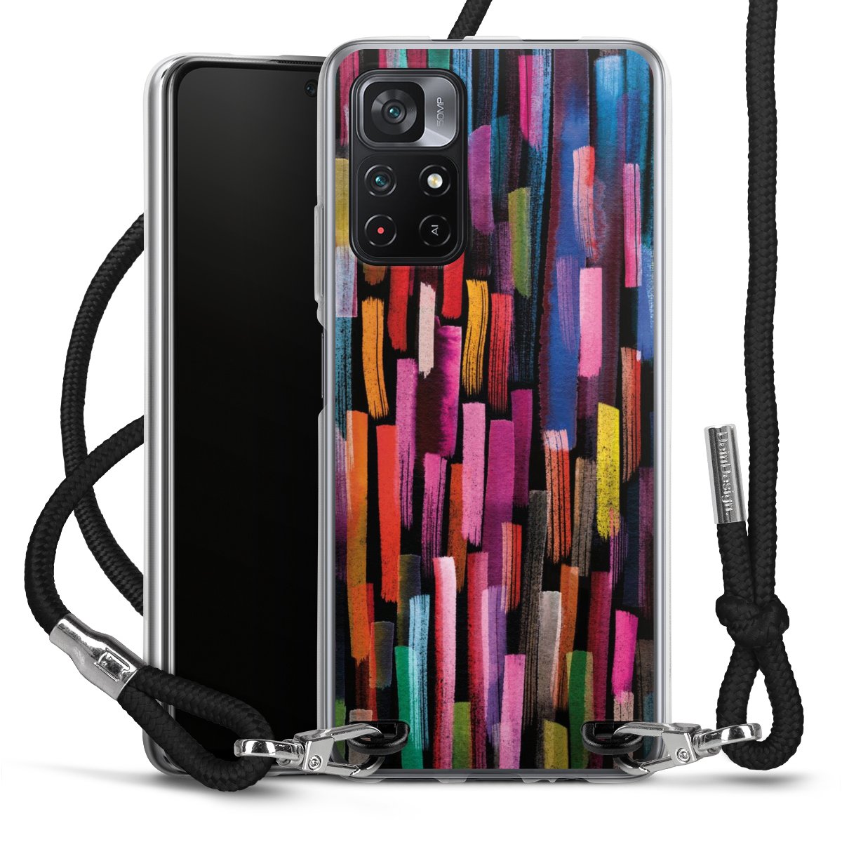 Keep your phone handy at all times, thanks to the flexible silicone case with a textile strap.
