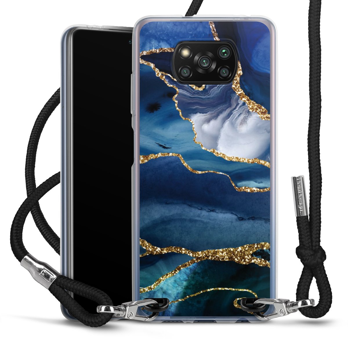 Blue Marble Gold Glitter Look