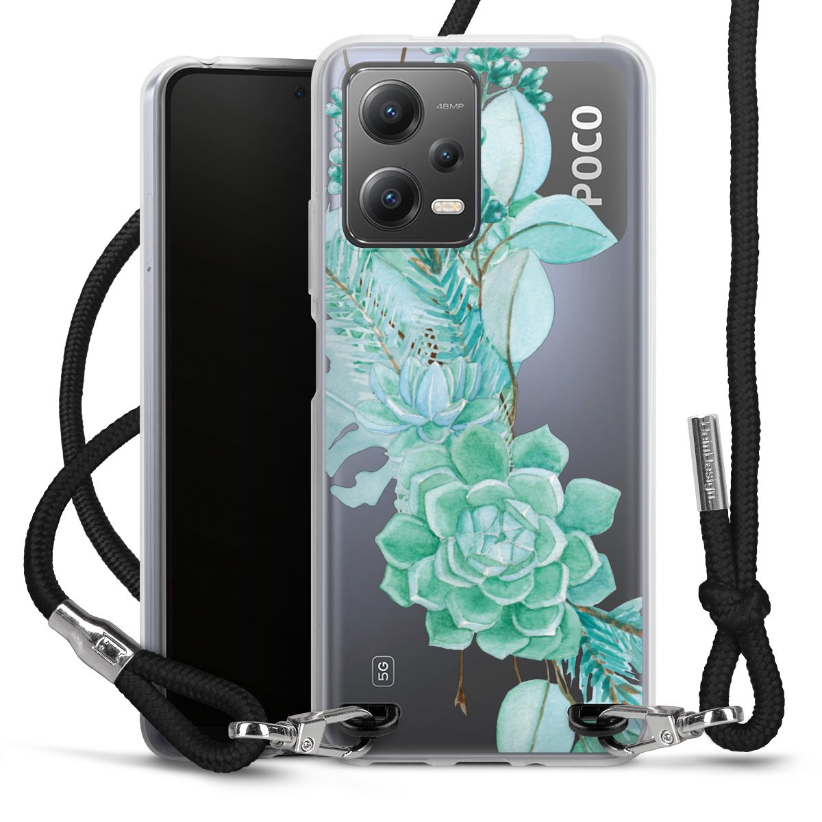 Keep your phone handy at all times, thanks to the flexible silicone case with a textile strap.