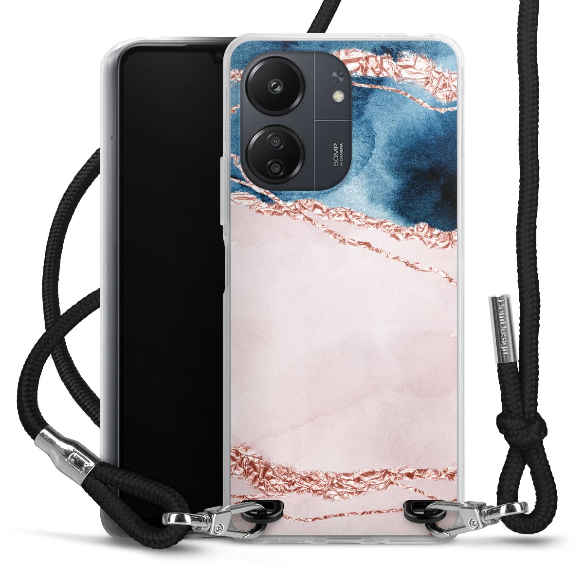Keep your phone handy at all times, thanks to the flexible silicone case with a textile strap.
