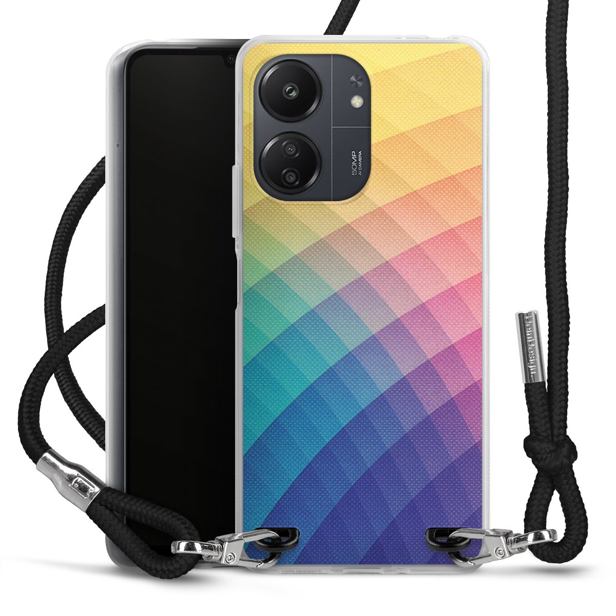 Keep your phone handy at all times, thanks to the flexible silicone case with a textile strap.