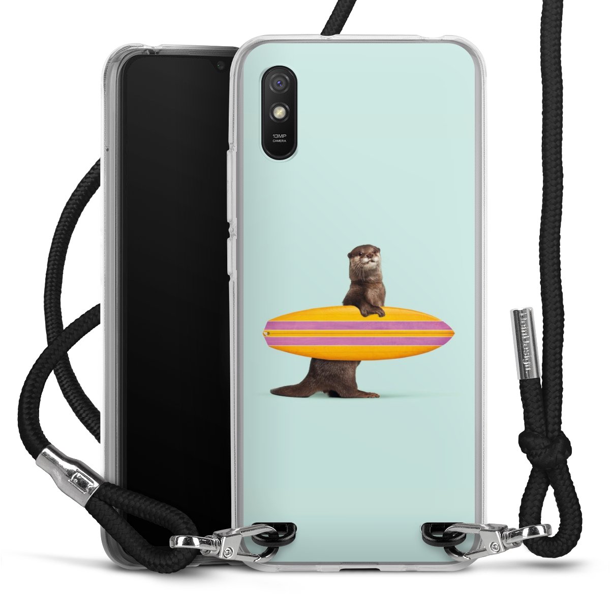 Keep your phone handy at all times, thanks to the flexible silicone case with a textile strap.