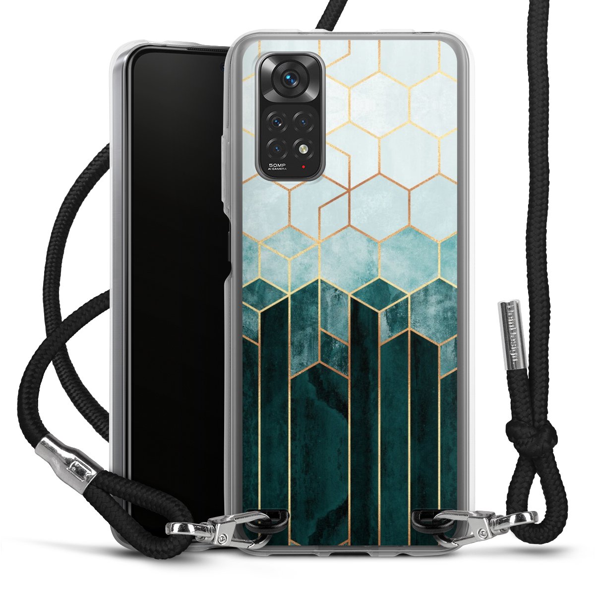 Keep your phone handy at all times, thanks to the flexible silicone case with a textile strap.