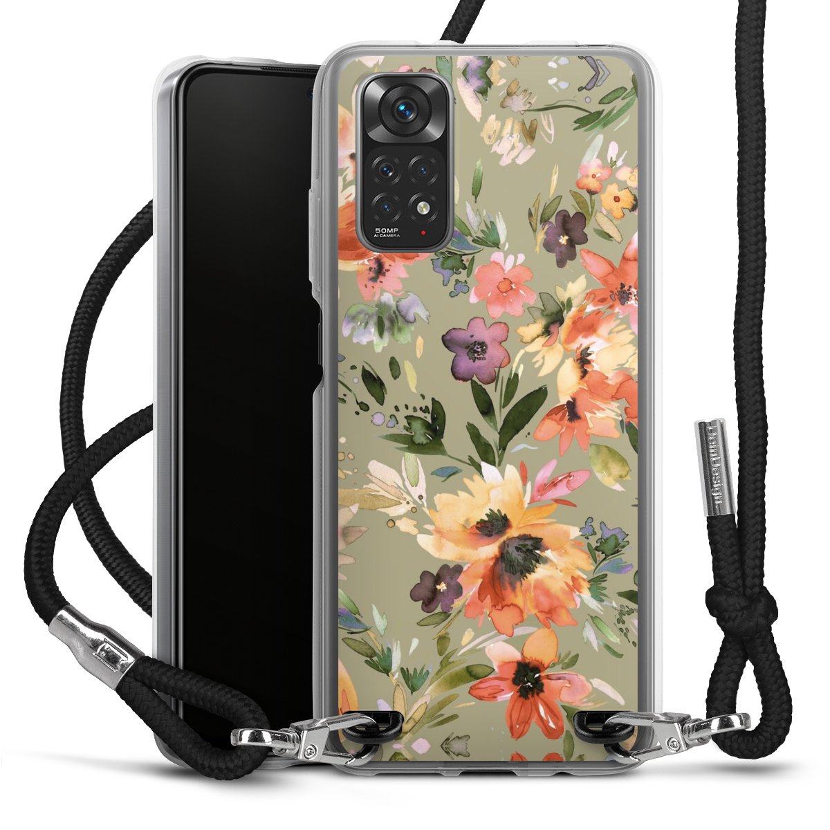 Keep your phone handy at all times, thanks to the flexible silicone case with a textile strap.