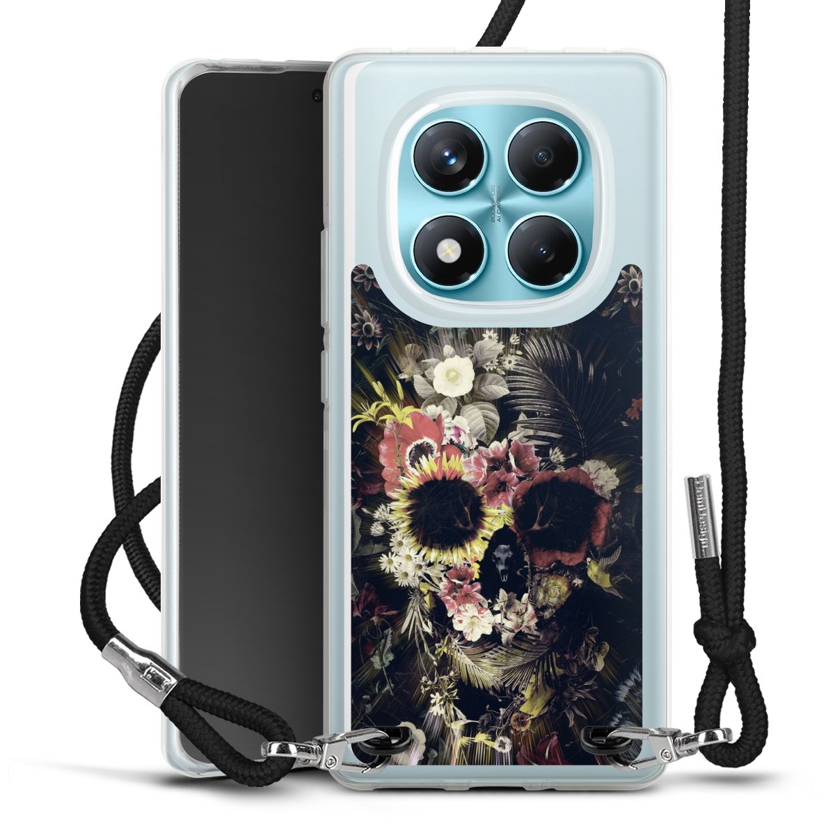 Keep your phone handy at all times, thanks to the flexible silicone case with a textile strap.
