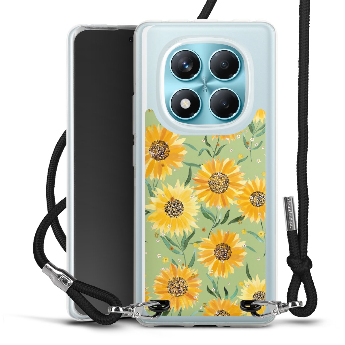 Keep your phone handy at all times, thanks to the flexible silicone case with a textile strap.